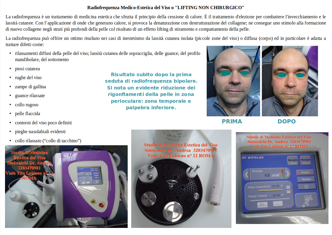 - Trattamento delle lassità cutanee, macchie, ipercromie, teleangectasie, lesioni vascolari