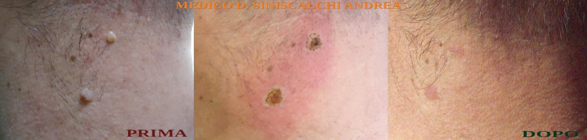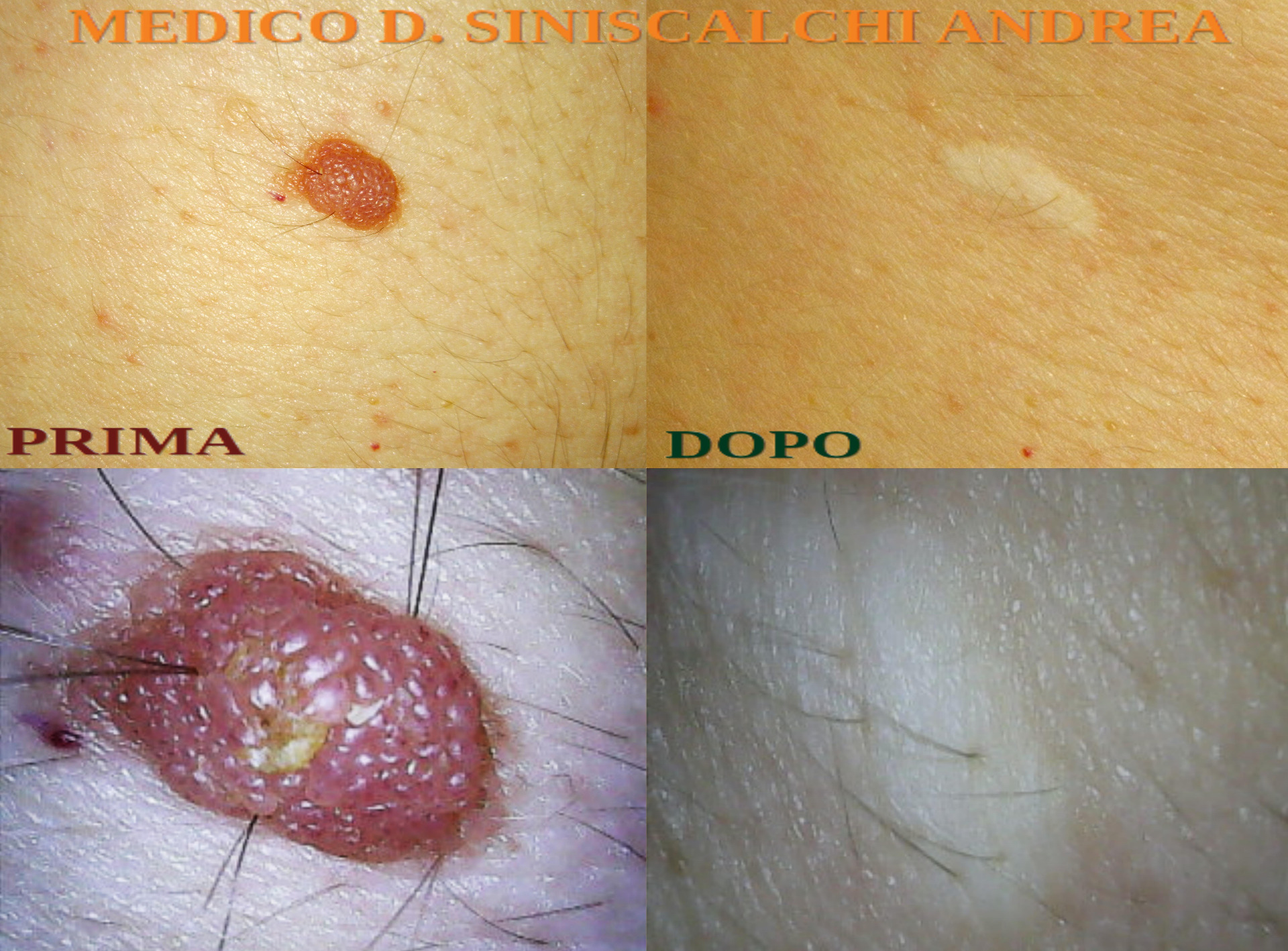 Effettuo asportazione laser di micro-chirurgica di neoformazioni benigne ad impatto estetico, come: fibromi, cheratosi seborroiche, verruche, condilomi, nevi dermici, grani di miglio, xantelasmi, lentigo solari, melasma, papule fibrose, adenomi sebacei, siringomi angiomi rubino, lipoma, cisti sebacee.
