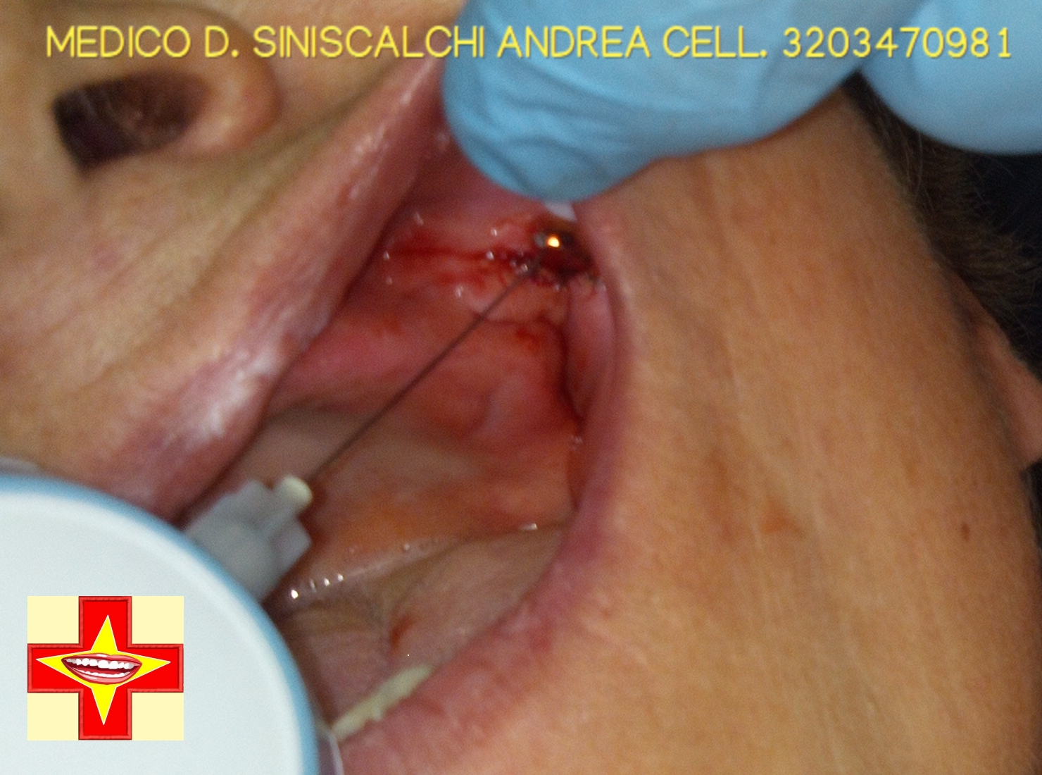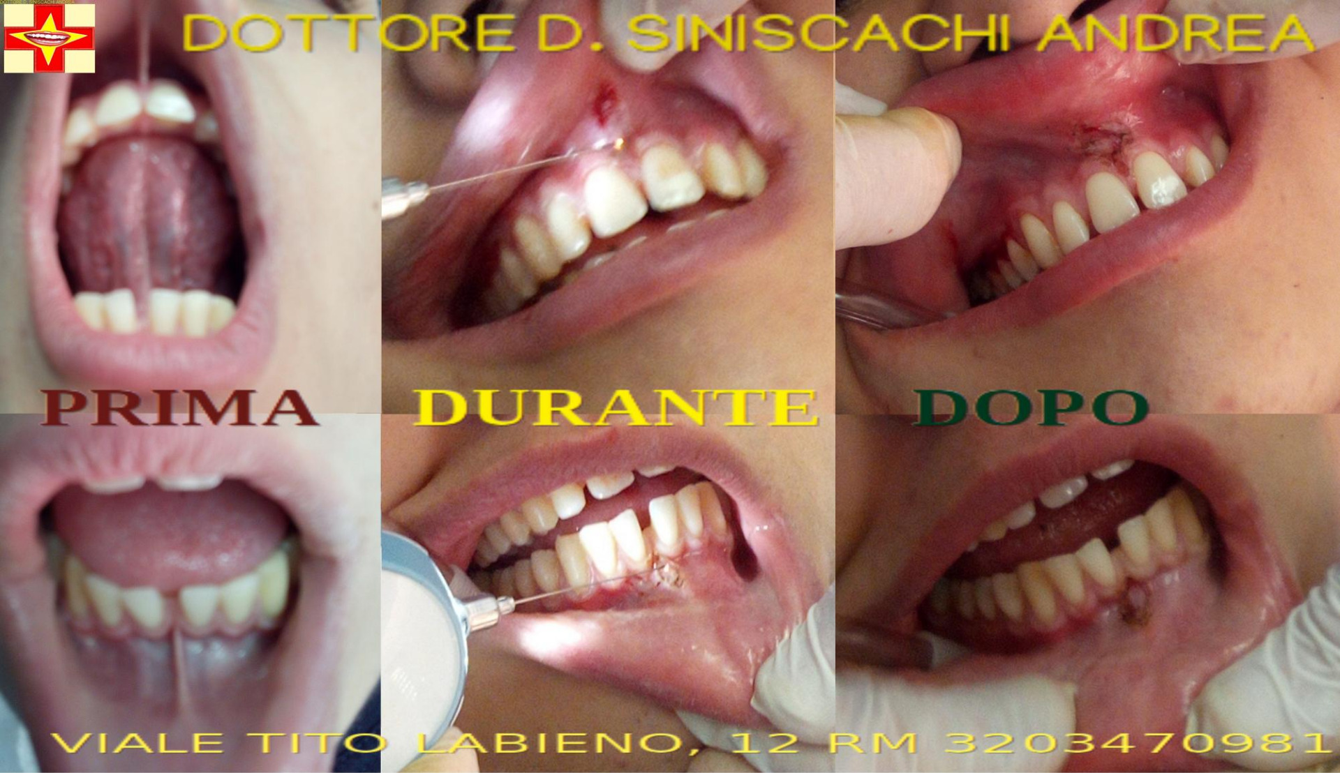 Ablazione con laser al plasma per vaporizzazione dei frenuli labiali in anestesia locale. No sanguinamento e senza punti di sutura